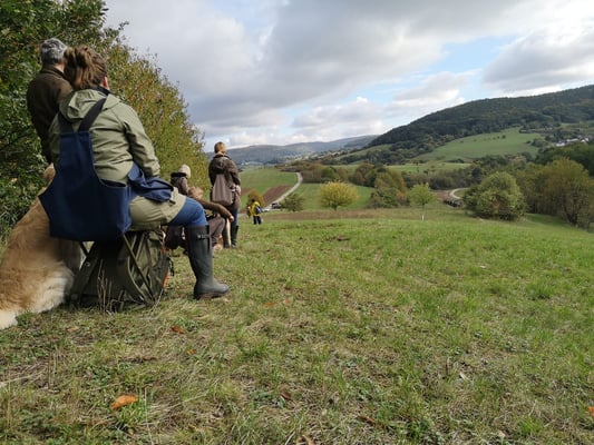 Nach unserem Reviergang definieren wir (ggf. in Teams) - sicher ganz unterschiedliche - Aufgaben, die wir in das Gelände einbauen können und erarbeiten uns diese anschließend mit unseren Hunden (an den jeweiligen Leistungsstand angepasst!).